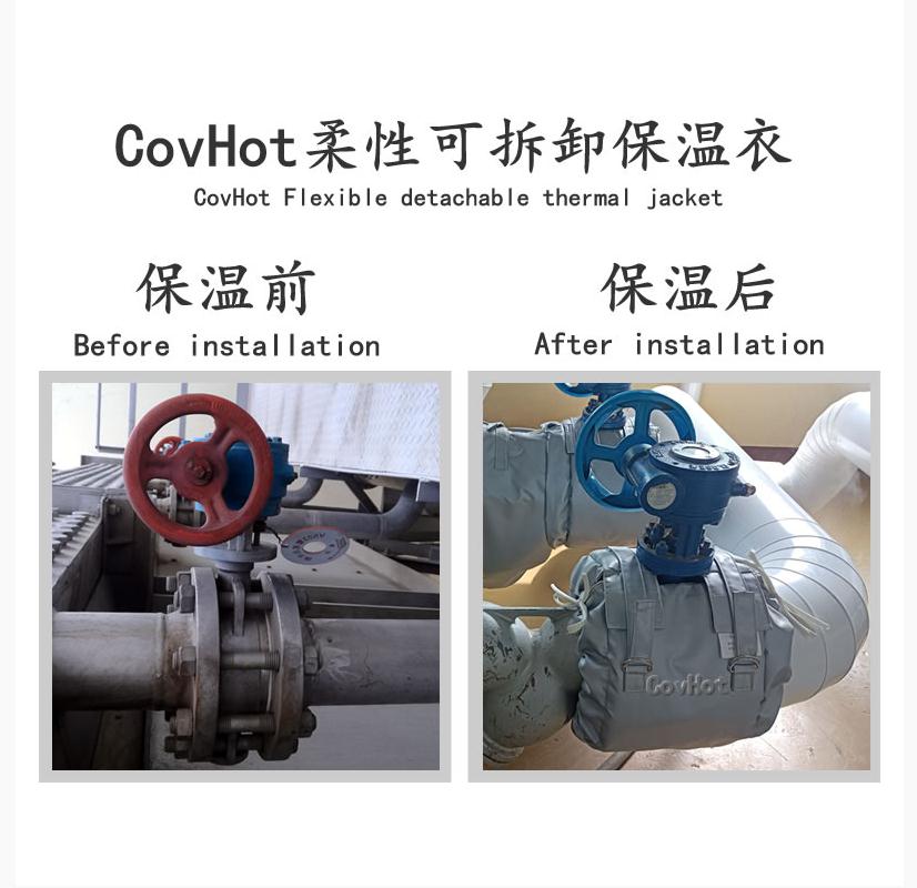 2.化工類:化工廠在日常生產(chǎn)中會(huì)頻繁接觸到許多腐蝕性強(qiáng)及溫度高的物質(zhì),可拆卸保溫套可以避免設(shè)備和人員受到傷害,從而提高生產(chǎn)的安全性和可靠性。