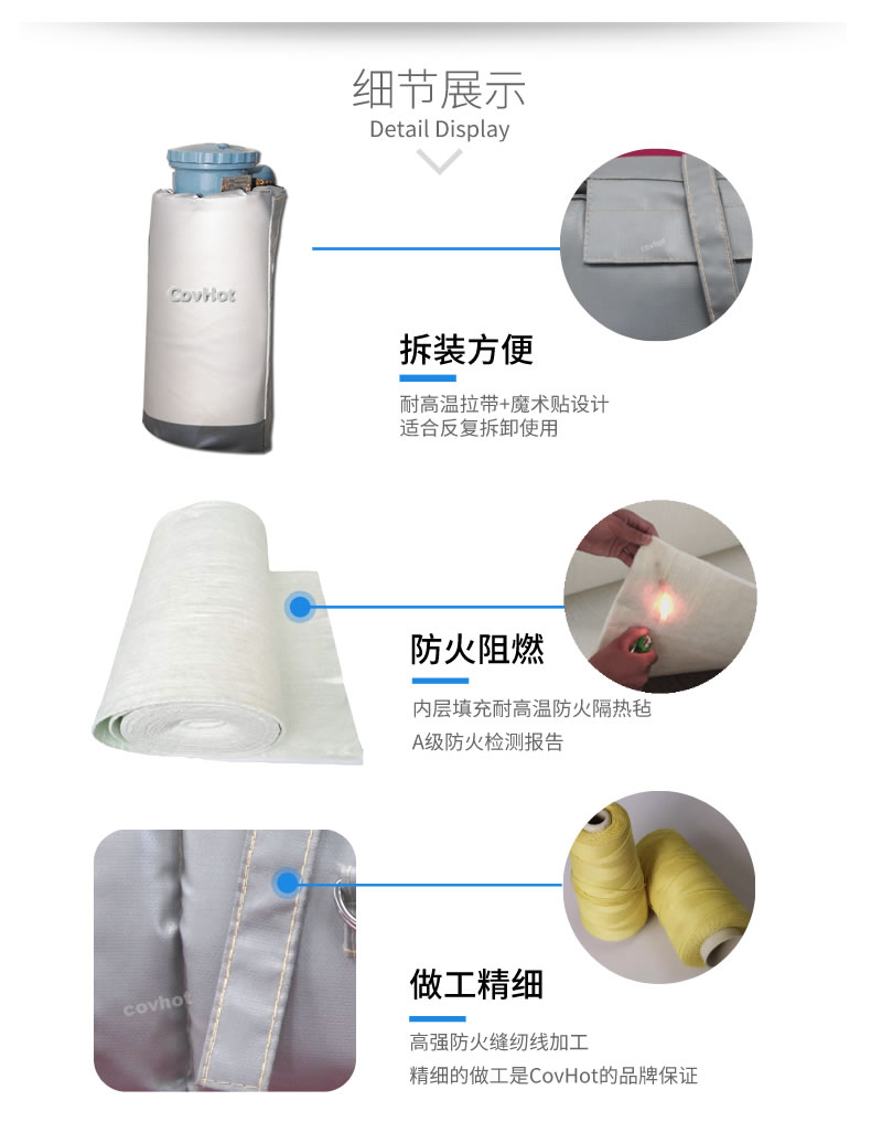 1. 可拆卸保溫套將儀器儀表易凍或怕凍的部位包起來,科好特可拆卸防凍保溫衣內(nèi)部有針對(duì)低溫防凍的保溫材料,導(dǎo)熱系數(shù)低,可以起到很好的防凍保溫效果。